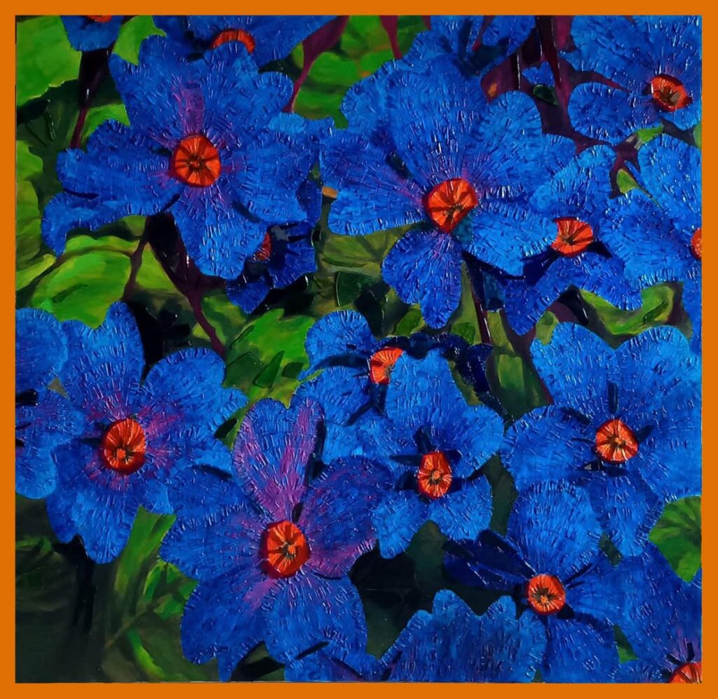 - Geflügelte Schatten“ 4 Teile jeweils 112 + 78 cm, Material: MDF, Holzrahmen, Glas für Glasmalerei, Technik: Acryl, Öl, 2 Arten von Lack